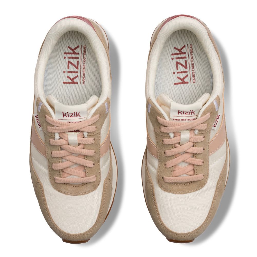 This Kizik sneaker blends a clean, retro-inspired look with modern comfort and hands-free convenience. Designed for everyday wear, it features soft neutral tones that make it easy to pair with casual and smart-casual outfits alike. The streamlined silhouette offers a timeless athletic style while delivering all-day comfort.