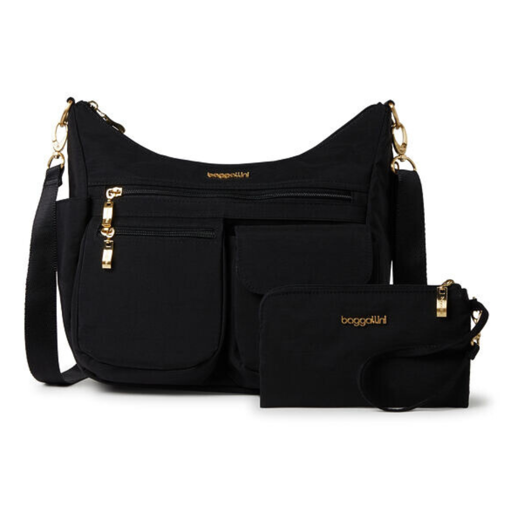 Baggallini Modern Everywhere Black/Gold Hardware Crossbody Bag (Women's)