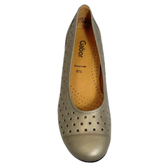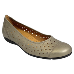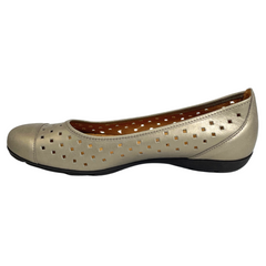 Step into spring with effortless elegance in these stylish perforated flats. Crafted from soft metallic leather, these shoes feature a breathable design with delicate square cutouts—perfect for warmer days. The rounded toe and low-profile sole offer a classic silhouette, while the cushioned insole ensures all-day comfort.