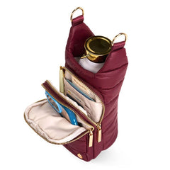 Stay hydrated and hands-free on the go with the patented WanderFull® HydroBag®, perfect for travel, festivals, walks, and more. Keep your reusable bottle safe and scratch-free while reducing single-use plastic waste. With two zippered pockets for your phone, passport, cards, and other essentials, it’s more practical than most small bags. The water-resistant design fits bottles up to 3.5" wide and protects your items from spills—also great for coffee cups or wine bottles. Lightweight, durable, and stylish with a quilted finish and adjustable strap, it’s a chic and functional accessory that makes a perfect gift.