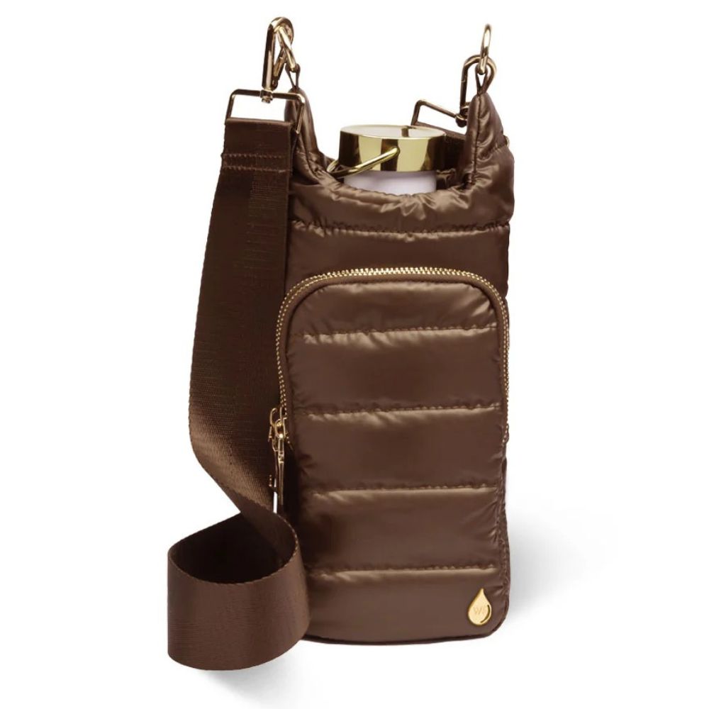 Stay hydrated and hands-free on the go with the patented WanderFull® HydroBag®, perfect for travel, festivals, walks, and more. Keep your reusable bottle safe and scratch-free while reducing single-use plastic waste. With two zippered pockets for your phone, passport, cards, and other essentials, it’s more practical than most small bags. The water-resistant design fits bottles up to 3.5" wide and protects your items from spills—also great for coffee cups or wine bottles. Lightweight, durable, and stylish with a quilted finish and adjustable strap, it’s a chic and functional accessory that makes a perfect gift.