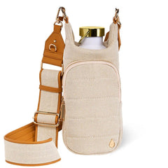 Stay hydrated and hands-free on the go with the patented WanderFull® HydroBag®, perfect for travel, festivals, walks, and more. Keep your reusable bottle safe and scratch-free while reducing single-use plastic waste. With two zippered pockets for your phone, passport, cards, and other essentials, it’s more practical than most small bags. The water-resistant design fits bottles up to 3.5" wide and protects your items from spills—also great for coffee cups or wine bottles. Lightweight, durable, and stylish with a quilted finish and adjustable strap, it’s a chic and functional accessory that makes a perfect gift.