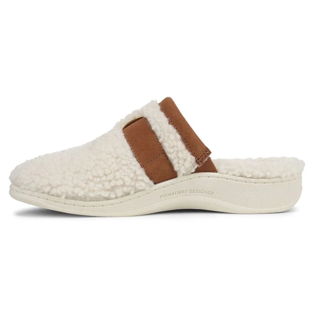 Step into the ultimate cozy vibe with the Izzy clog slipper, wrapped in soft faux shearling from top to toe. Its adjustable leather or suede belt with a handy hook-and-loop fastener and stretchy side panel make slipping in and out a breeze. With a contoured EVA midsole and tough TPR outsole, these slippers keep your feet comfy and supported as you stride through your day.
