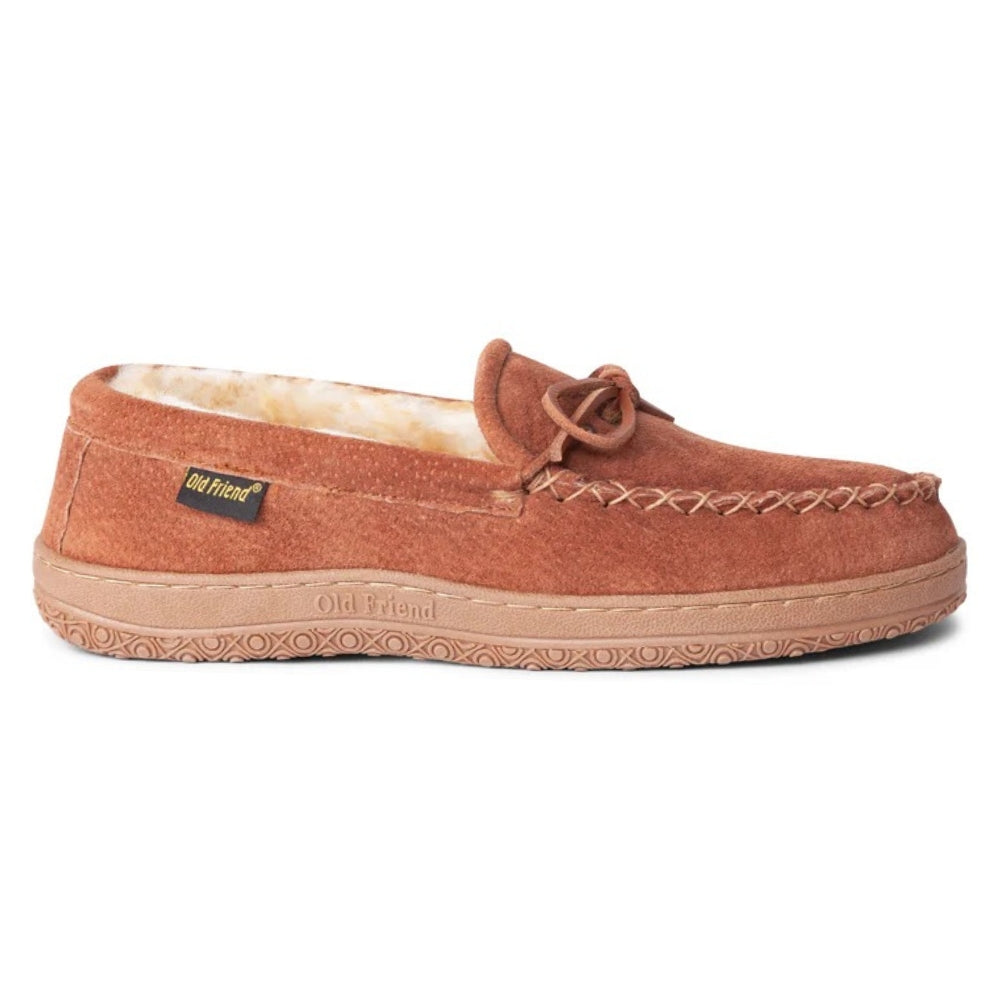 Slip into the Old Friend Loafer Moccasin and discover why comfort meets style. Hand-stitched with precision, this chestnut beauty features a cinch-tie closure that adjusts to your foot's mood. The generous toe box gives your toes the breathing room they deserve, while 100% sheepskin insoles cradle every step. A cushioned midsole keeps things cozy, and the removable insole means you can swap in your favorite orthotics whenever you please. Built tough with a durable rubber outsole, this loafer laughs in the face of wear and tear. Available in men's sizes 7-16, including wide and extra-wide options.