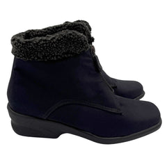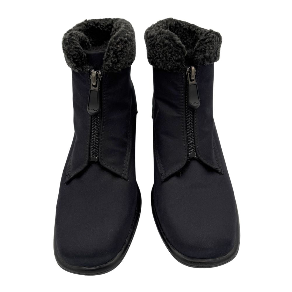 Warm and comfortable ankle-height winter boots designed for daily use. Made from soft, durable material with a cozy fleece-lined collar that helps retain heat and keeps your feet warm in cold weather. The front zipper allows for easy on and off, while the lightweight sole provides stability and comfort throughout the day. Their simple, classic look makes them easy to pair with casual outfits.