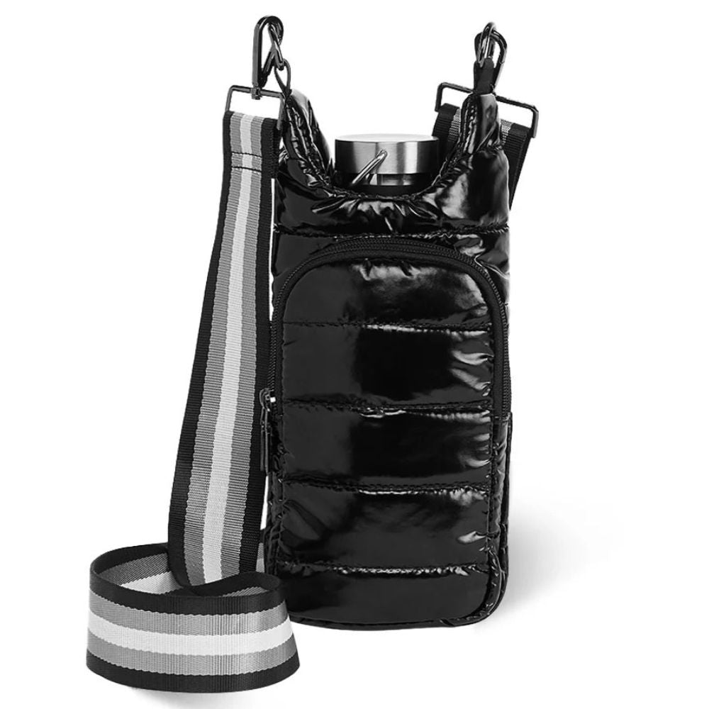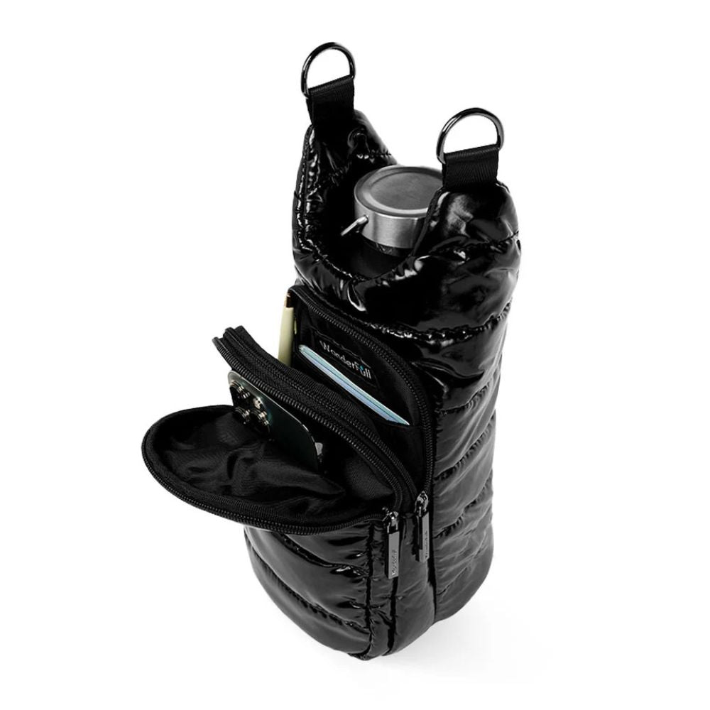 Stay hydrated and hands-free on the go with the patented WanderFull® HydroBag®, perfect for travel, festivals, walks, and more. Keep your reusable bottle safe and scratch-free while reducing single-use plastic waste. With two zippered pockets for your phone, passport, cards, and other essentials, it’s more practical than most small bags. The water-resistant design fits bottles up to 3.5" wide and protects your items from spills—also great for coffee cups or wine bottles. Lightweight, durable, and stylish with a quilted finish and adjustable strap, it’s a chic and functional accessory that makes a perfect gift.