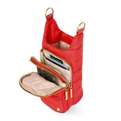Stay hydrated and hands-free on the go with the patented WanderFull® HydroBag®, perfect for travel, festivals, walks, and more. Keep your reusable bottle safe and scratch-free while reducing single-use plastic waste. With two zippered pockets for your phone, passport, cards, and other essentials, it’s more practical than most small bags. The water-resistant design fits bottles up to 3.5" wide and protects your items from spills—also great for coffee cups or wine bottles. Lightweight, durable, and stylish with a quilted finish and adjustable strap, it’s a chic and functional accessory that makes a perfect gift.