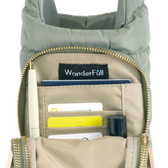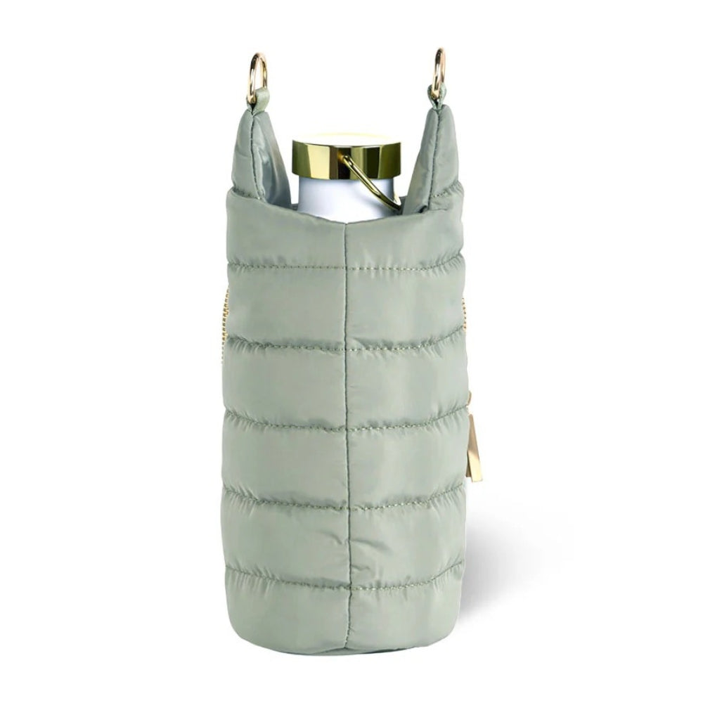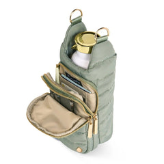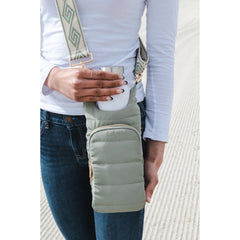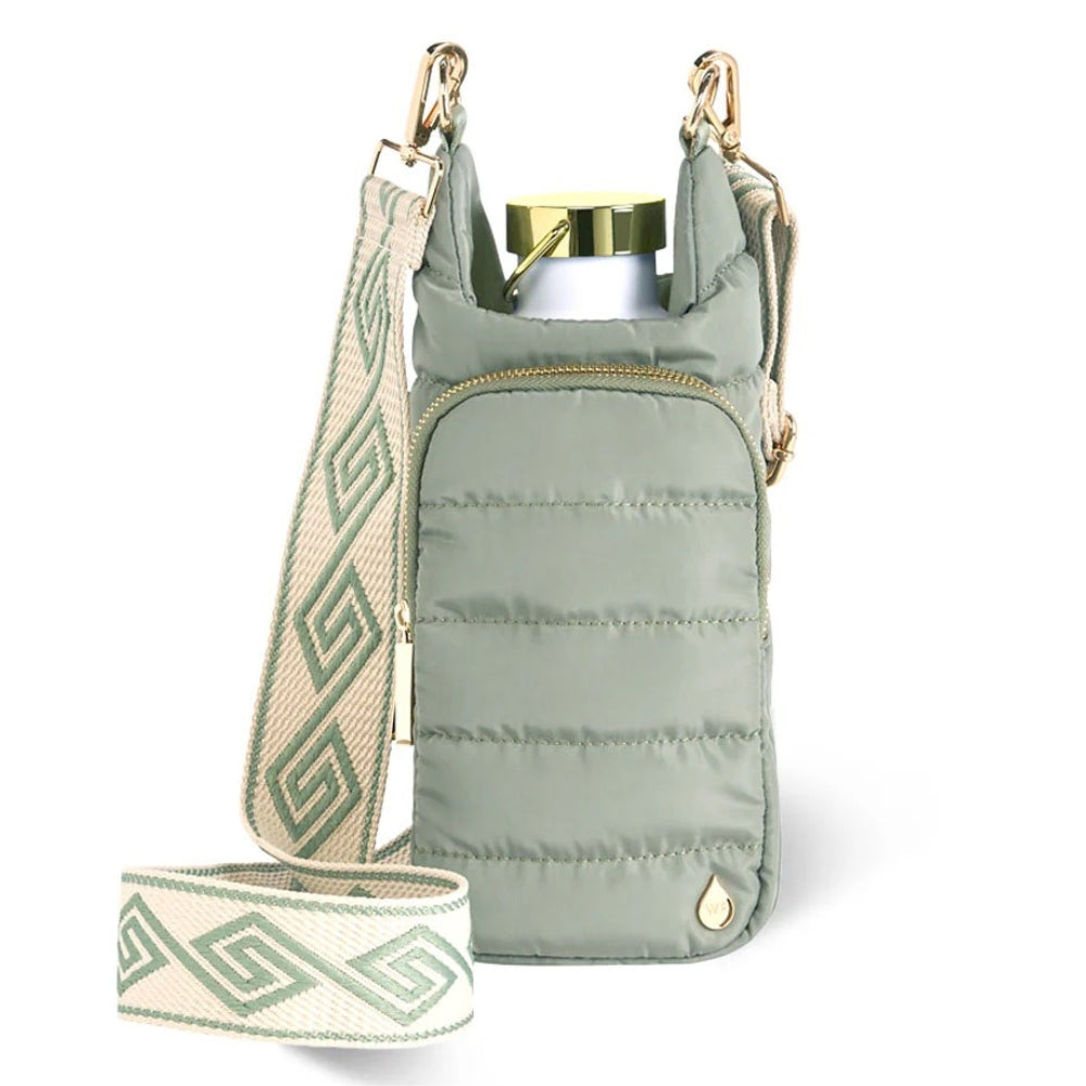Stay hydrated and hands-free on the go with the patented WanderFull® HydroBag®, perfect for travel, festivals, walks, and more. Keep your reusable bottle safe and scratch-free while reducing single-use plastic waste. With two zippered pockets for your phone, passport, cards, and other essentials, it’s more practical than most small bags. The water-resistant design fits bottles up to 3.5" wide and protects your items from spills—also great for coffee cups or wine bottles. Lightweight, durable, and stylish with a quilted finish and adjustable strap, it’s a chic and functional accessory that makes a perfect gift.